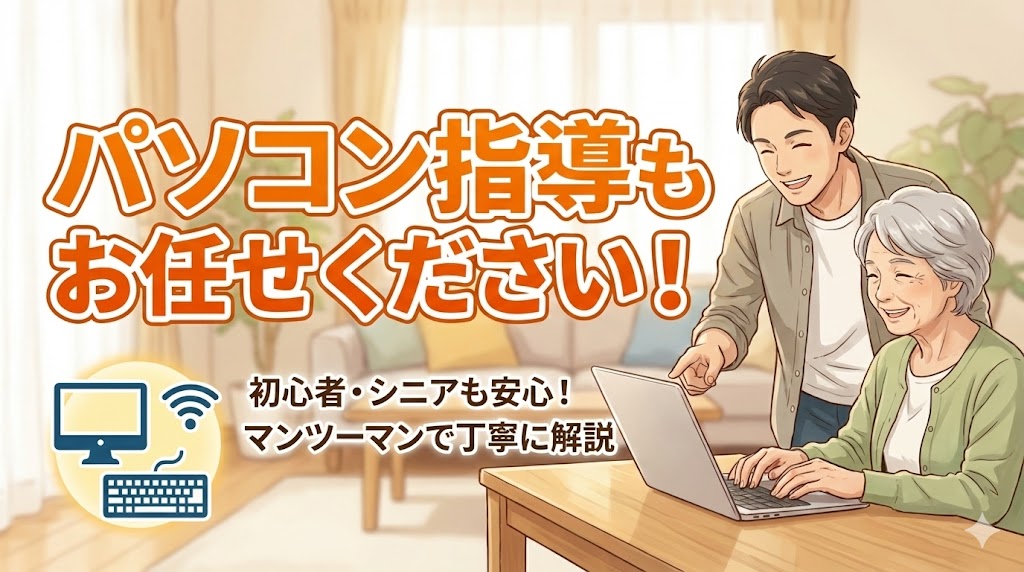 パソコンを買ったばかりで使い方がわからない、パソコンソフトの設定や使い方を教えてほしい、そんなお悩みを解決します。
