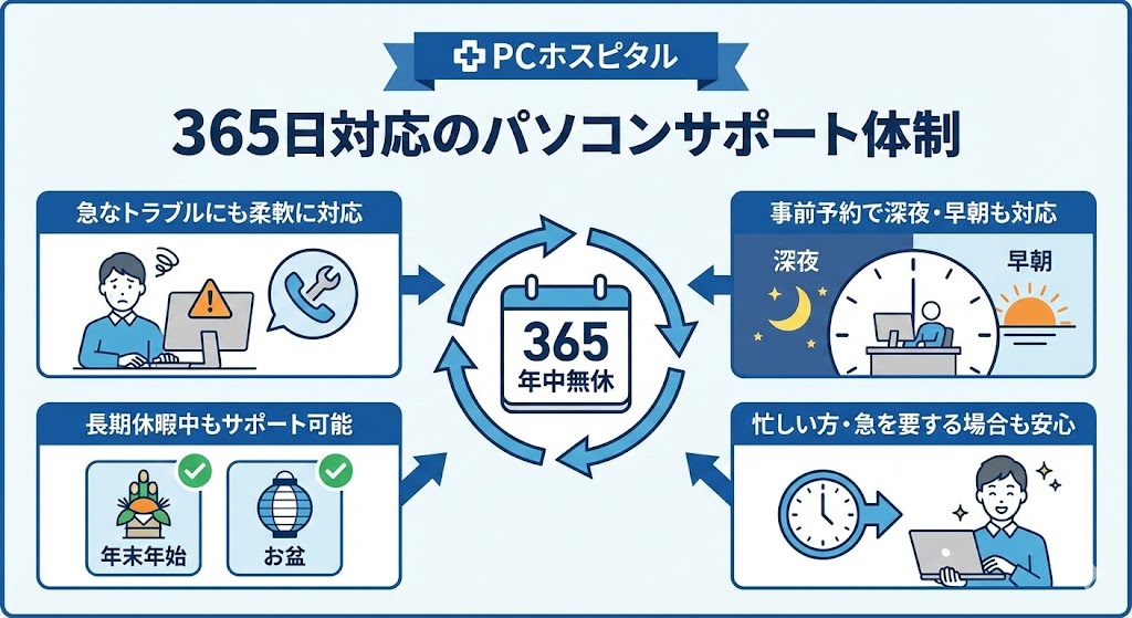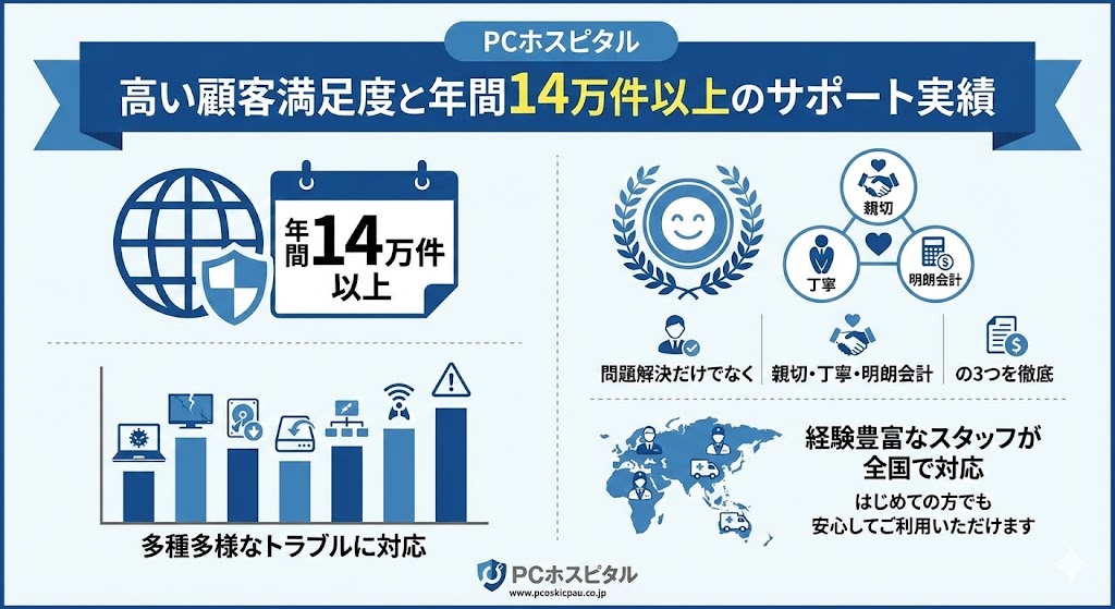 本記事では、PCホスピタルが多くの方に選ばれ続けている「安心の理由」を5つに絞ってご紹介します。